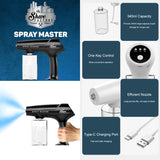 Introducing the Shave Factory Spray Master. Featuring a high-capacity reservoir for extensive coverage and an enduring 60-minute spray time. This lightweight, cordless nano mist sprayer simplifies your tasks with ergonomic comfort and easy operation.