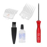PREMIUM ACCESSORIES INCLUDED Includes 8 double magnetic guards: #0 (1/16") #1 (1/8") #1.5 (3/16") #2 (1/4") #3 (3/8") #4 (1/2") #5 (5/8") #6 (3/4"), charging stand/cord, cleaning/maintenance kit, a convenient mini screwdriver for blade regulation, and custom body modifications.
