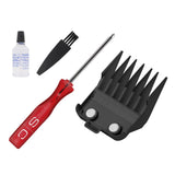 • INCLUDES: Clipper, black DLC Faper fixed blade, black DLC slim deep tooth cutter, 8 magnetic guards (1/16”, 1/8”, 3/16", 1/4”, 3/8”, 1/2”, 5/8", 3/4"), blade cover, stretch bracket, charging stand and cord, cleaning/maintenance kit and screwdriver