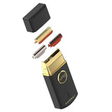 Super close-cutting while keeping even the most sensitive skin free of razor bumps, ingrown hairs or skin irritation. Super sleek, lightweight design, includes a forged cutter, crunchy cutter, a plush velvet bag, and a protective cap. Featuring a universal USB 30-minute rapid recharge.