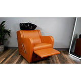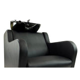 The Stanley is a beautiful blend of quality, style and functionality with a white porcelain bowl and stylish black or camel upholstery. The modern design is offset by elegantly rounded armrests. The built in headrest is foam lined, so your clients can completely relax.