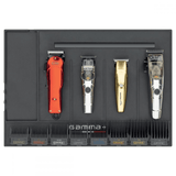 The GAMMA+ Barber Magnetic Mat Organizer is a must-have for professional barbers and stylists. With its super strong magnetic stripe, it securely holds up to 4 hair clippers or trimmers upright for space optimization and easy access handling.
