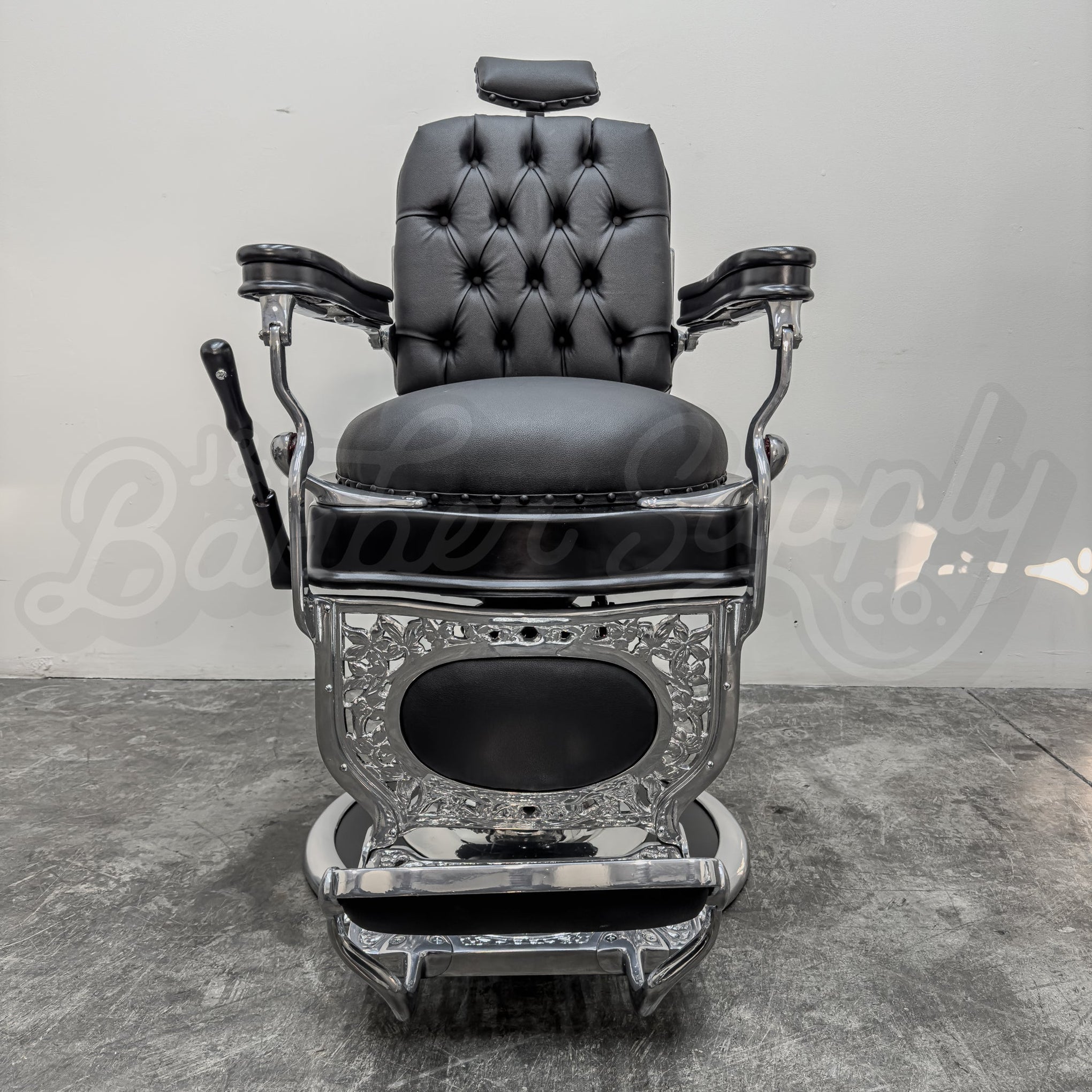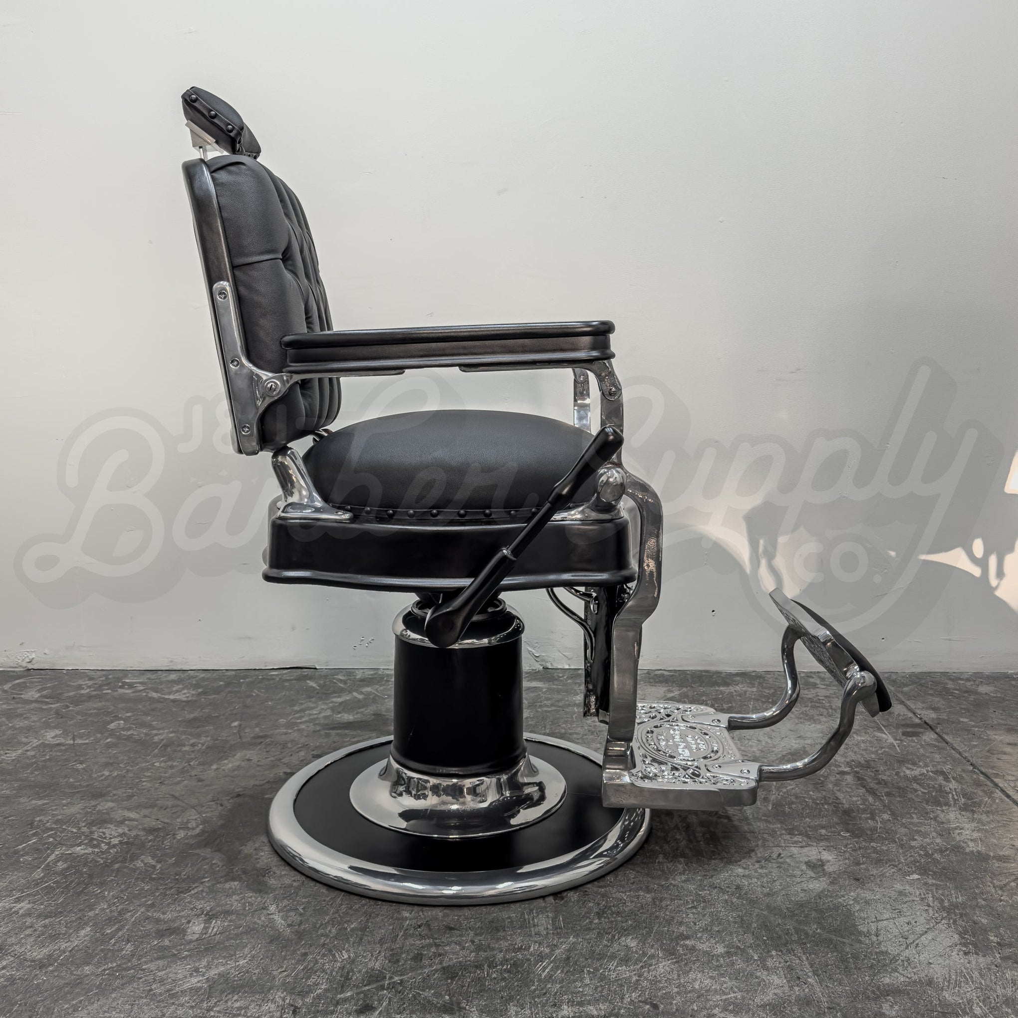 Not quite what you had envisioned? We are able to fully customize the barber chair, from the upholstery color and design, to powder coating the metal frame. Send us a message and we will work together on creating a unique chair designed for you.