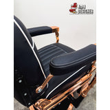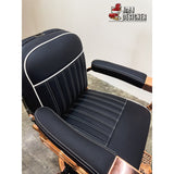 Not quite what you had envisioned? We are able to fully customize the barber chair, from the upholstery color and design, to powder coating the metal frame. Send us a message and we will work together on creating a unique chair designed for you.